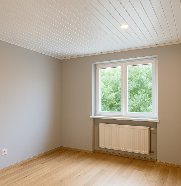 Kunststoffpaneele sind pflegeleicht und feuchtigkeitsbeständig, eignen sich also auch für Küche oder Bad. Holzpaneele wirken hochwertig, sollten aber hell oder matt gewählt werden, um nicht denselben Effekt wie die alte Decke zu erzeugen.