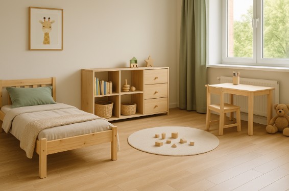 • Kleinkinder: In den ersten Lebensjahren reicht wenig Platz, da das Zimmer vor allem zum Schlafen dient. Spielen findet häufig im Wohnzimmer oder gemeinsam mit den Eltern statt.